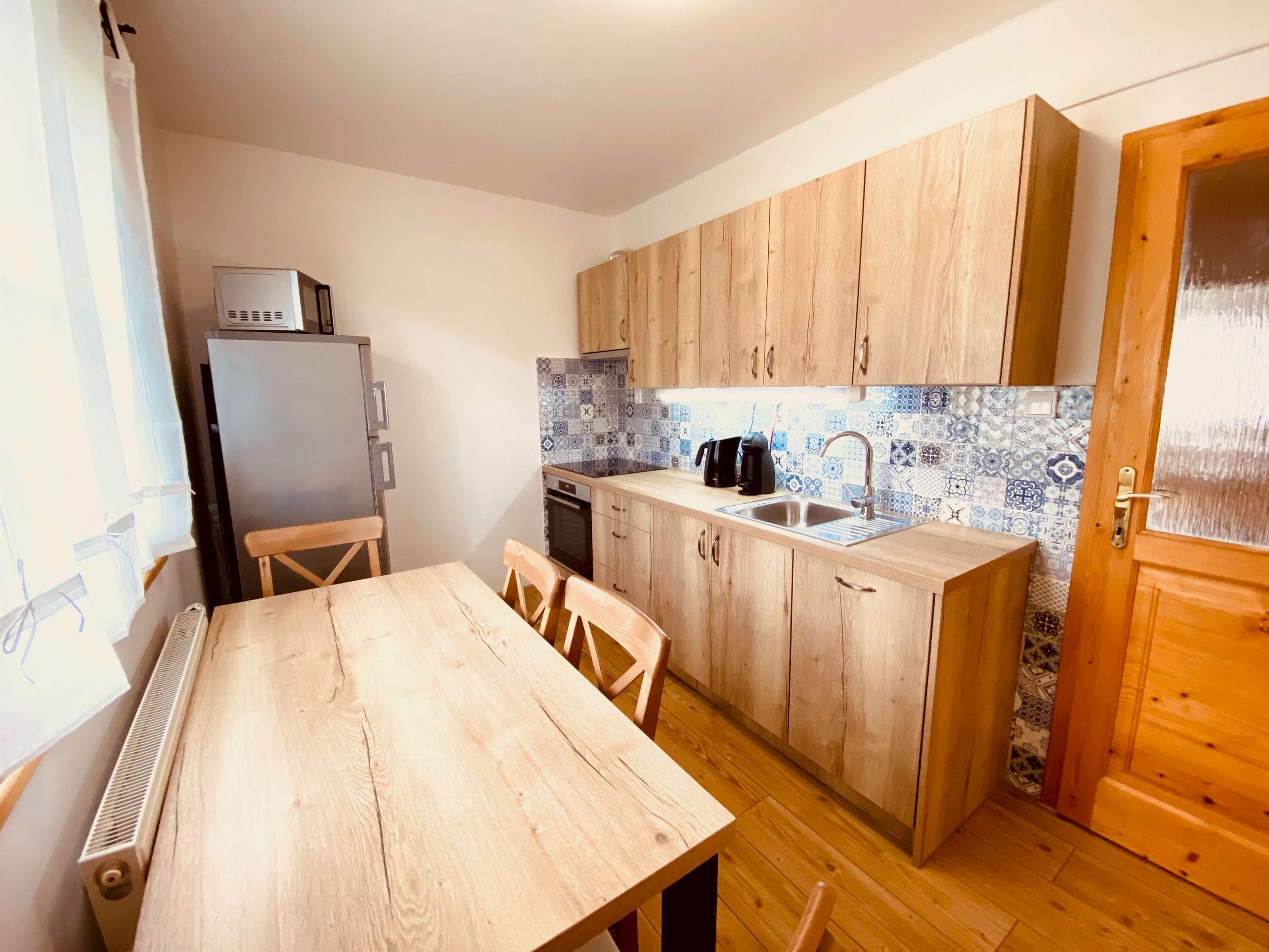 Na pokoji WC, sprchový kout, TV, plně vybavená kuchyňská linka, WiFi zdarma.